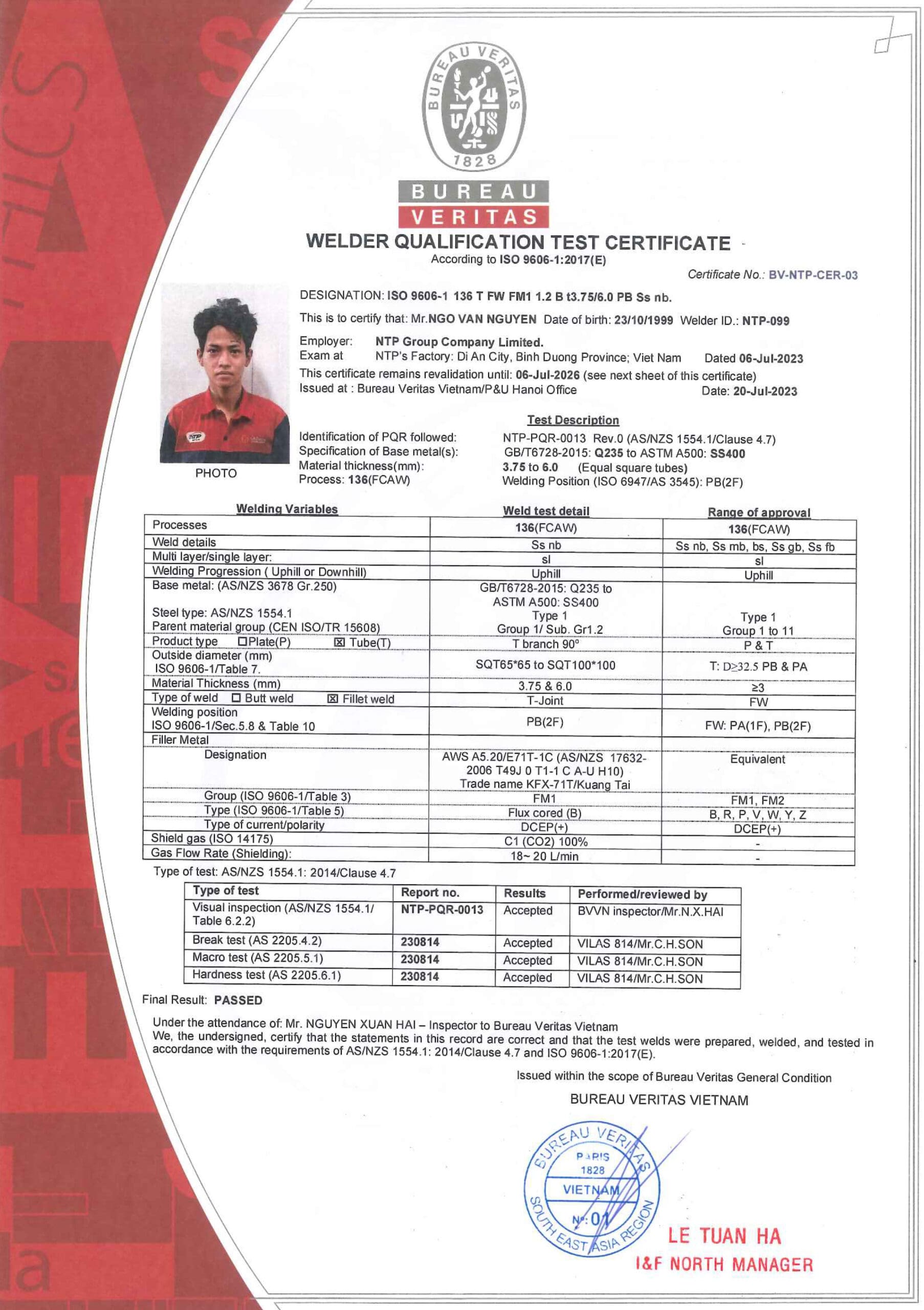 お客様が必要とする特殊な製品については、ISO15609-1、ISO15614-1の溶接手順を適用しています。また、NTPの溶接工は溶接規格ISO9606-1の資格を持っており、このような製品を完成させることができます。